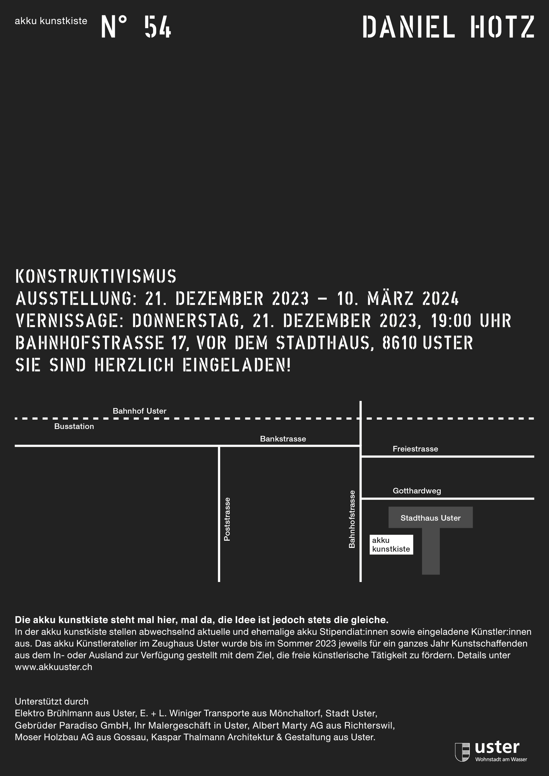 Am Samstag, 28. Juni 2025, findet von 14 – 20 Uhr die Austellung „kunst+bündig“ des Kunstvereins Uster statt.